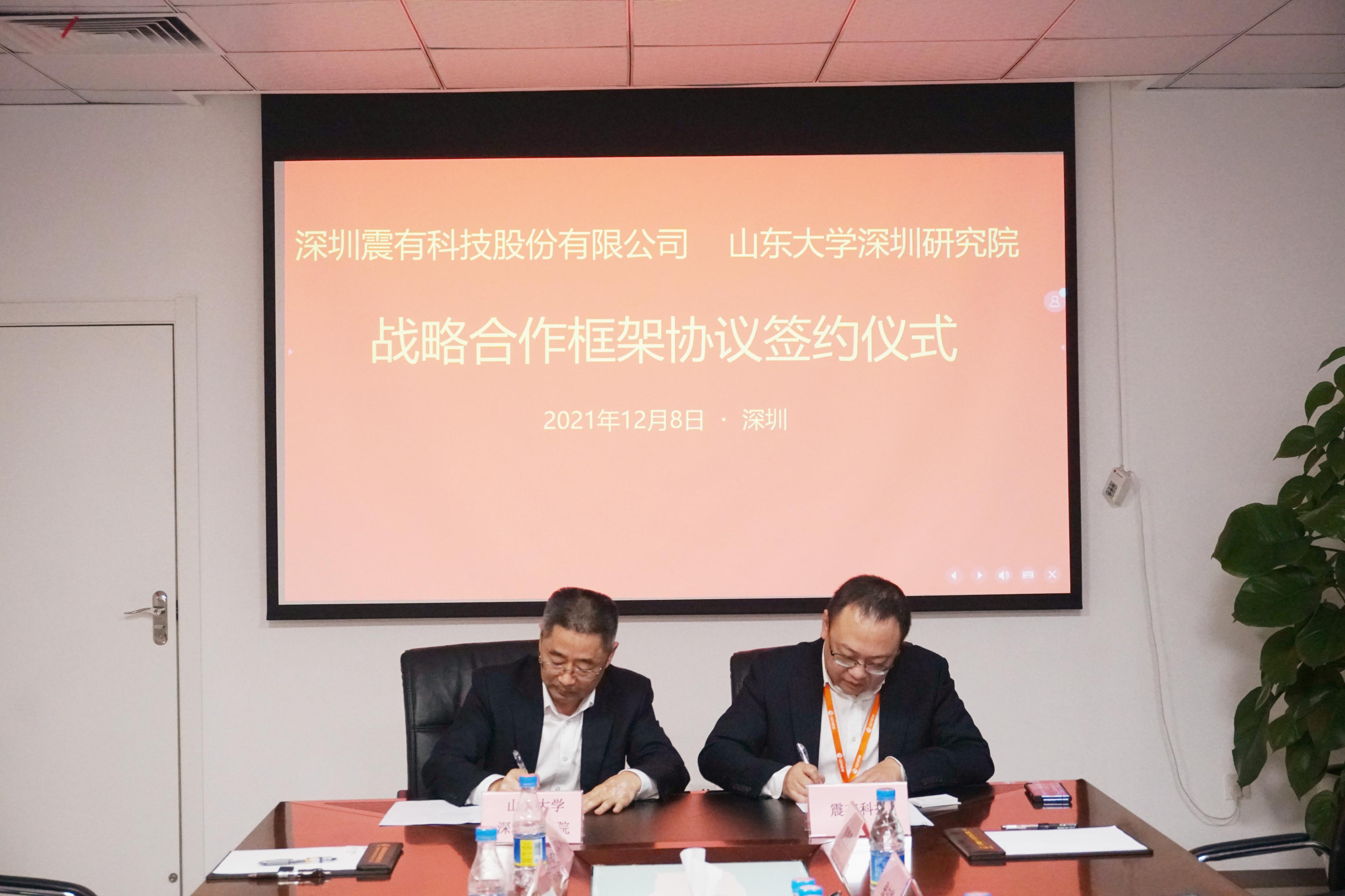 12月8日,深圳研究院与深圳震有科技股份有限公司(以下简称“震有科技”)举行战略合作协议签约仪式。深圳研究院常务副院长王明星,震有科技董事长、总经理吴闽华、副总经理孟庆晓、副总经理张中华出席签约仪式,王明星与吴闽华并代表双方签署协议,双方将在人才培养与交流、联合科研创新等方面开展合作。