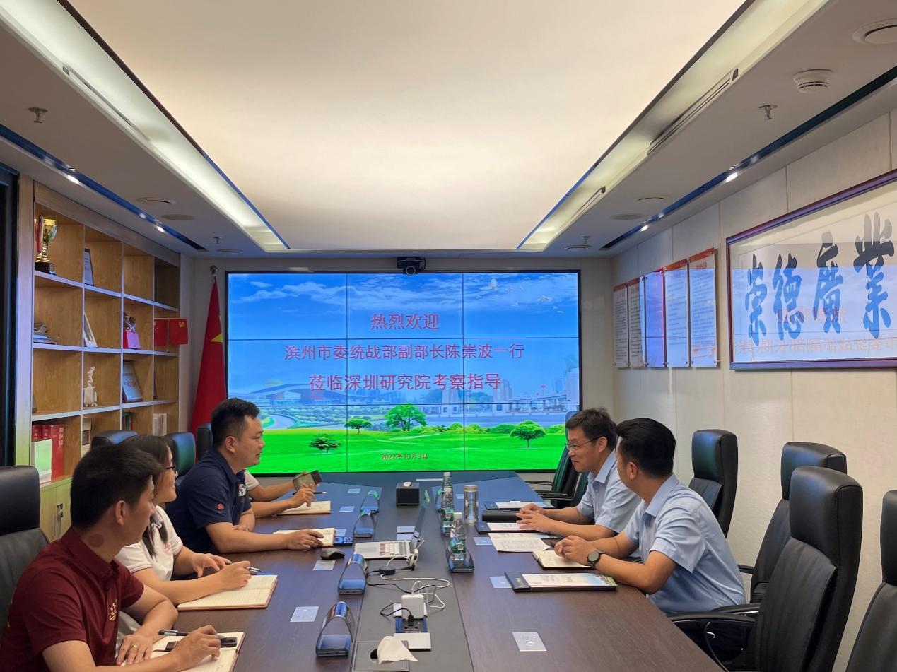 10月9日,滨州市赴深圳“体悟实训”队领队,滨州市委统战部副部长,市工商联党组书记、副主席陈崇波一行莅临研究院考察调研,研究院办公室主任王飞虎接待调研组并进行座谈交流。