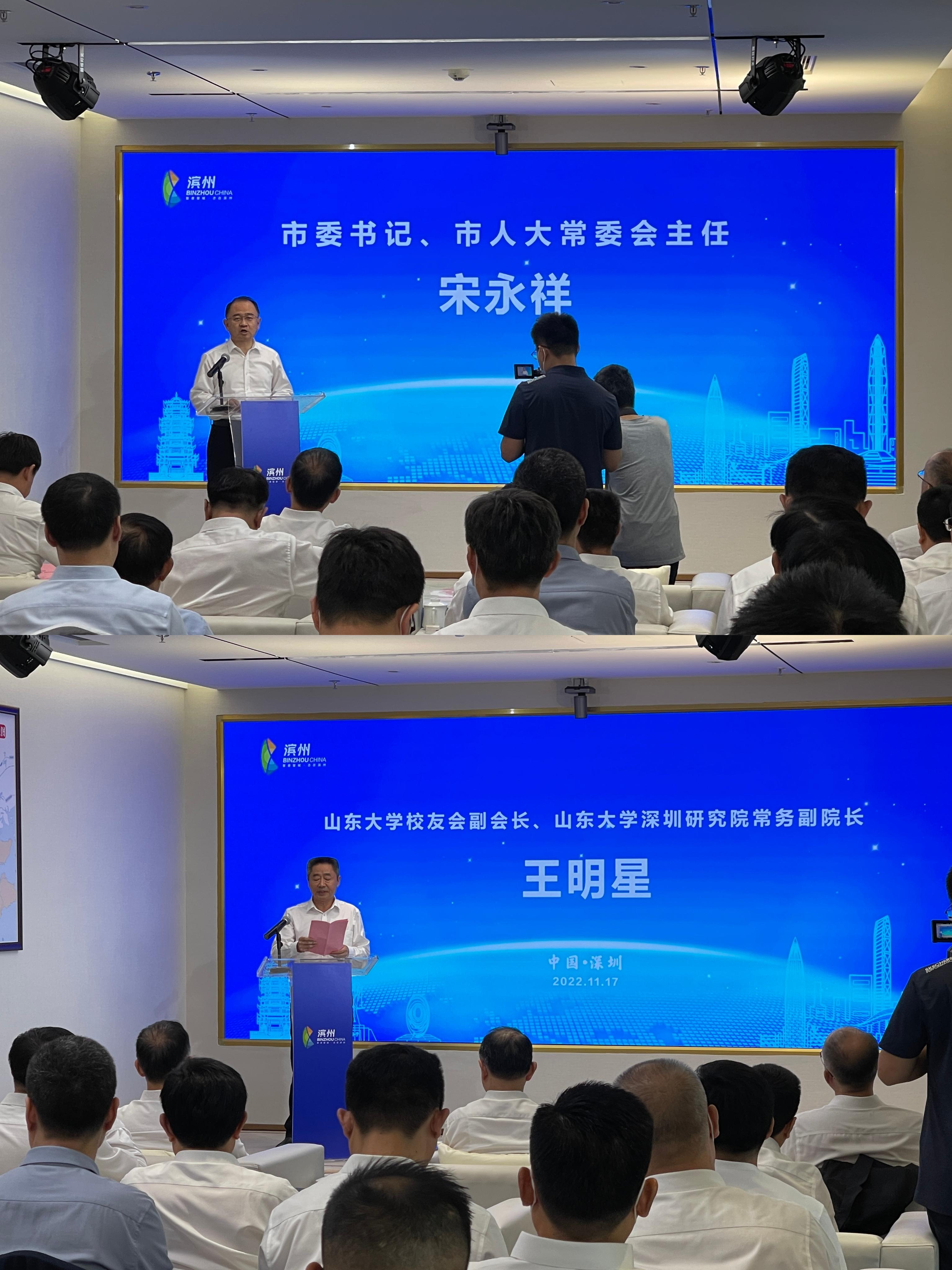 11月17日,研究院助力滨州市在深举办双招双引推介会,助力滨州市赴深开展“体悟实训”活动,与滨州市工商联签订战略合作协议,协助开展企业家培训等多项服务。