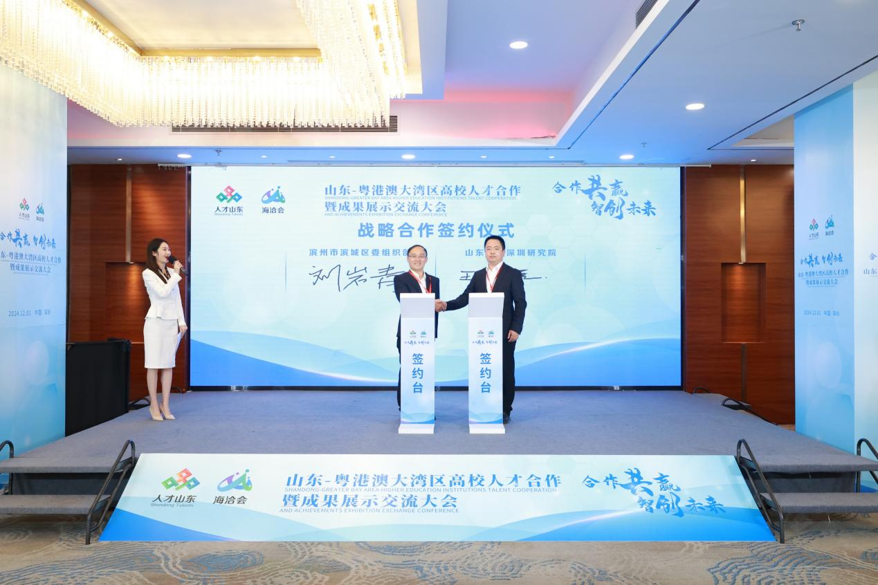 会上,深圳研究院分别与山东省政府驻广州办事处、滨州市滨城区签署战略合作协议。各方将围绕国家重大战略需求,以服务和融入新发展格局为重点,充分发挥各自优势,在高端人才培养、科研合作、产学研深度融合和双招双引等方面建立全面合作关系,助力鲁粤两省进一步深化拓展产业、科技创新、对外开放、文化传播等领域交流互惠,为粤港澳大湾区高水平人才高地建设,山东省打造高水平对外开放新高地,奋力谱写中国式现代化山东篇章作出重要贡献。
