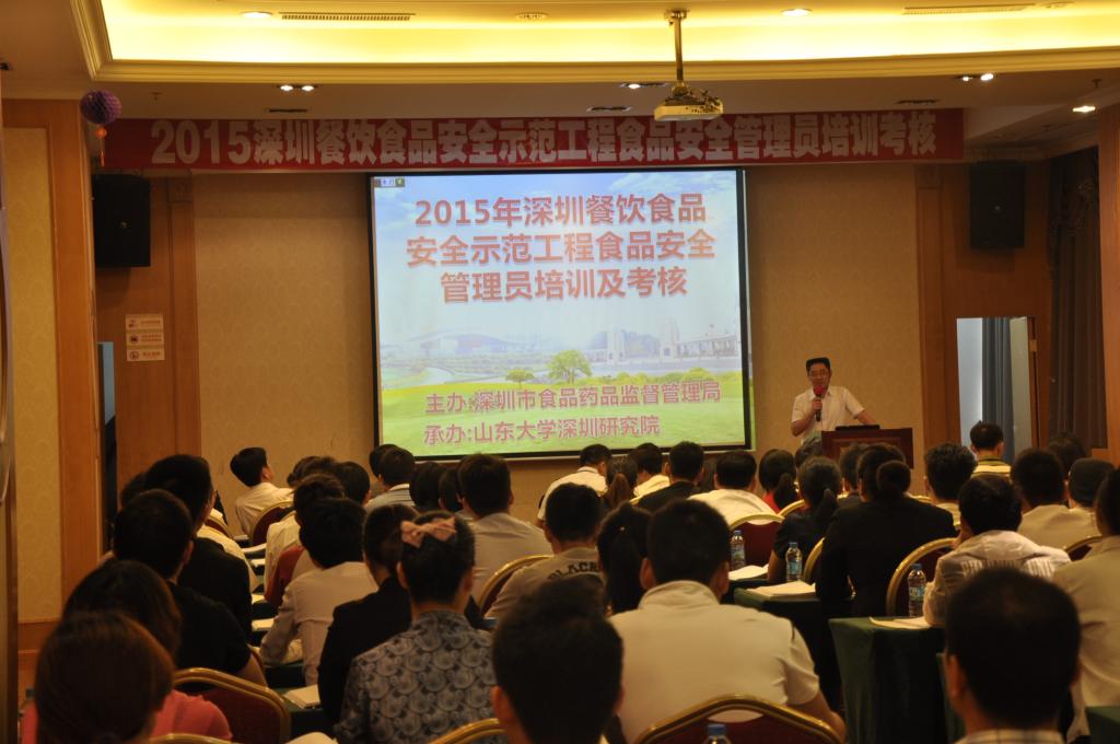 之后两会场由食品餐饮安全监管顾问秦立新老师和李文俊老师分别对沙井KMALL购物广场和龙华九方购物广场内近100家餐饮单位的近200名食品安全管理员进行为期两小时的新食品安全法、餐饮示范工程等最新食品安全监管工作的培训,随后进行了闭卷考试。