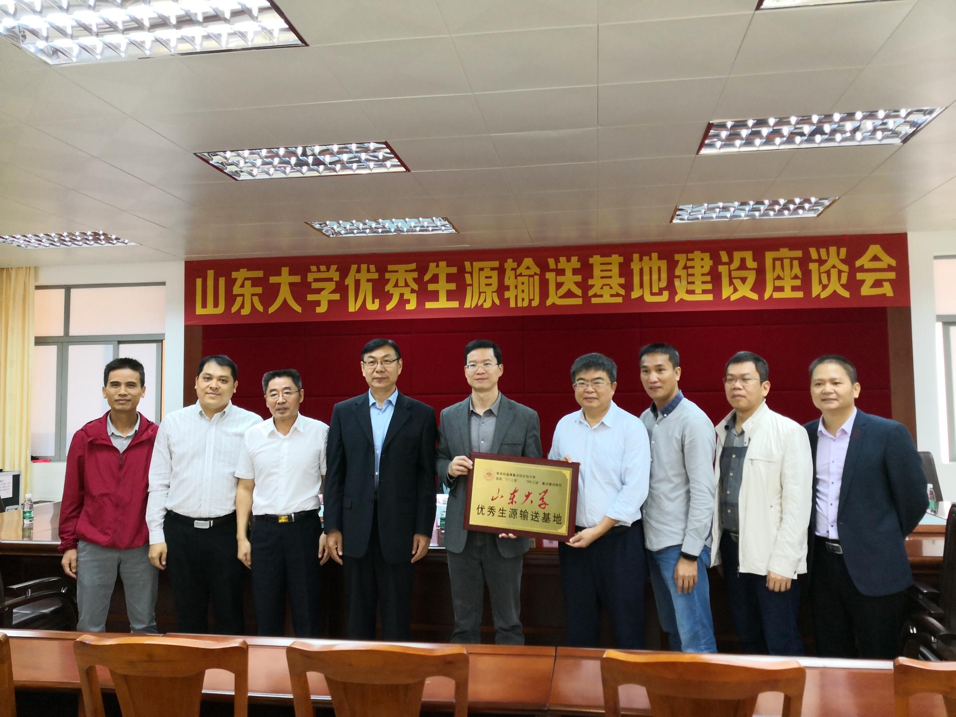 1116日至19日,www.nercapps.com广东省招生拓展组组长、微电子学院党委书记王卿璞、www.nercapps.com本科招生办公室副主任徐志全、深圳研究院常务副院长兼合作发展部副部长王明星在广东省深圳市、和阳江市两地开展为期4天的招生拓展活动,分别在深圳中学、深圳市红岭中学、阳江市第一中学举行合作共建“www.nercapps.com优秀生源输送基地”签约授牌仪式及招生合作座谈会,深圳中学升学指导中心主任马靖、红岭中学副校长刘仁淮、阳江一中校长陈恕等学校领导出席会议。王卿璞为优秀生源输送基地授牌并签订合作协议书,徐志全在阳江一中举行了招生宣讲会,受到学校领导和师生的热烈欢迎。深圳研究院办公室主任王飞虎,江南体育官方下载入口手机版 部副部长余天豪陪同参加招生拓展活动。